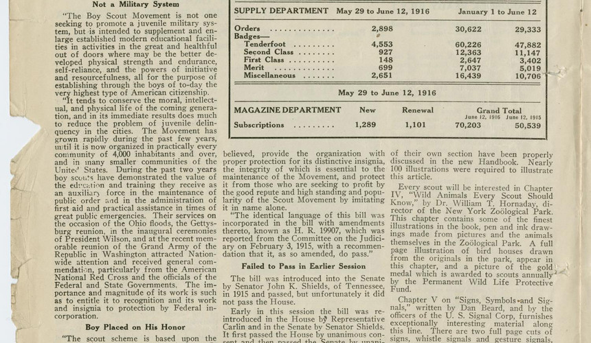 Scouting Magazines News Coverage of the Charter - Credit to Aaron on Scouting - Retrieved From https://blog.scoutingmagazine.org/2016/06/15/june-15-1916-woodrow-wilson-made-bsa-official/